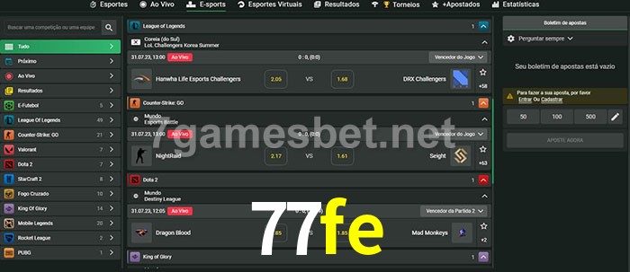 O 77fe oferece uma grande seleção de opções de apostas em e-sports com probabilidades competitivas